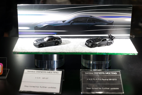 実はこのステージが行われているときと同じタイミングで発表されていたマシンなのだが、なんとそれがほぼリアルタイムで「トミカ」でも発売されることが明かされたというわけだ。「トミカ GR GT」は、公道レーシングカーを目指して作られたマシンである。「トミカプレミアム Racing GR GT3」のほうは、「GR GT」をベースに世界中のレースで活躍するカスタマーやドライバーファーストで開発された、FIAのGT3規格に基づいた新しいレーシングカーだ。
