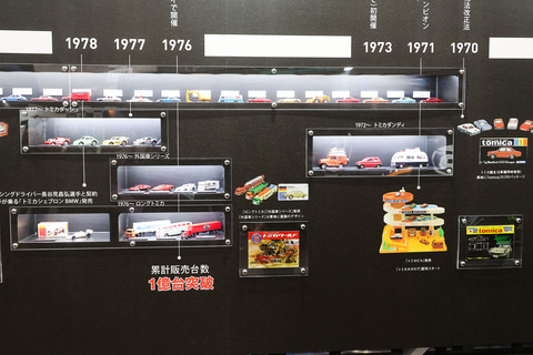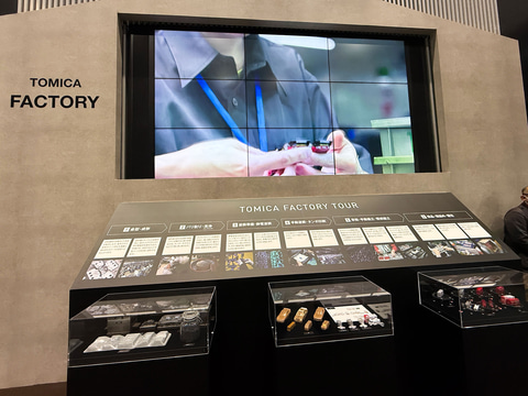 さらに、まだ発表されていない新商品を含む展示コーナーや「トミカ」のこれまでの歴史をまとめた「トミカ55周年ヒストリー展示」、トミカの製作工程が簡単に分かる「大人の工場見学 -トミカができるまで-」のコーナー、そして1/64スケールで作られたリアルなジオラマで、「トミカ」の写真を撮って楽しめる「リアルジオラマ展示コーナー」など、単純に見ているだけでも楽しめるコーナーや展示物が多数用意されていたという印象だ。