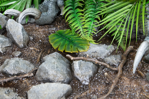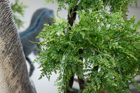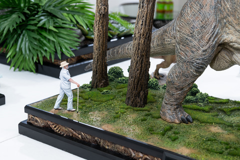 傍らに立つ人の造形を見れば、往時の巨大さを実感させる。表皮のシワや太く短い爪まできれいに造形されていて、下草や木の葉の造形も同レベルに細かく、ビッグサイズに違わぬ満足感のあるスタチューだと感じた。