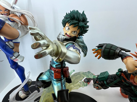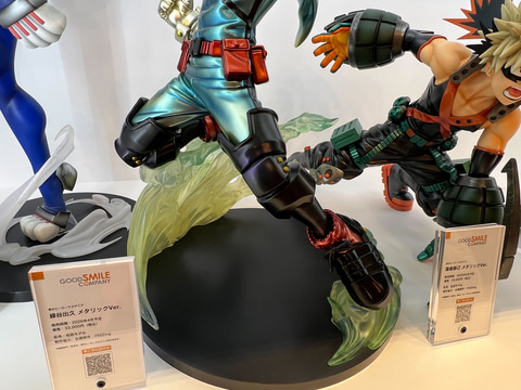「僕のヒーローアカデミア」では「緑谷出久 メタリックVer.」、「爆豪勝己 メタリックVer.」の他、「トガヒミコ」、「ミルコ」を展示。充実のボリュームと細やかな造形、彩色で再現されており、「メタリックVer.」はキラリと輝くメタリックカラーが美しい。