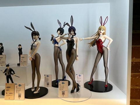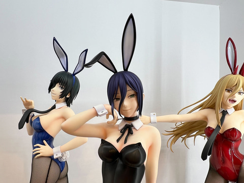 「チェンソーマン」からはバニー姿の「パワー」、「レゼ」、「姫野」、「コベニ」が登場。それぞれ色艶が異なるバニースーツを纏い、ビッグスケールで造形されている。布素材の網タイツも合わせて、こだわりを感じるフィギュアとなっている。