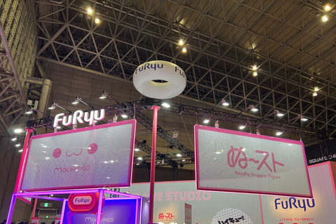また「ぬーどるストッパーフィギュア」以外にも、ちょっぴりシュールでかわいいぬいぐるみシリーズ「もちぴこ」と、つぶらな瞳とまんまるほっぺがちょぴっとかわいいフリューオリジナルぬいぐるみシリーズ「ちょぴぬい」の展示エリアも設けられており、様々な作品の商品が展示されている。