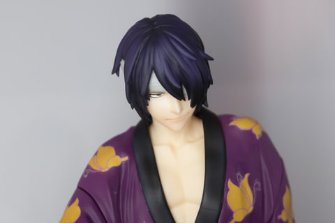 原作通りの着崩した艶やかな色合いの着物も似合っている。頭に巻いた包帯や、鋭くにらみつけるような表情などキャラクターの特徴もしっかり捉えられている印象だ。