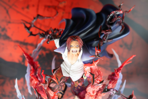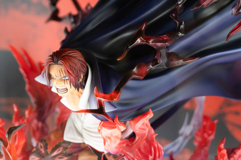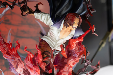 シャンクスが「神避」(かむさり)を使用するシーンを再現しており、覇気による赤と黒のエフェクトなど、フィギュアならではの演出面も見事だ。にらみつけるような鋭い表情に加えて、今にも相手に斬りかかっていきそうなポーズなど、キャラクターの特徴を最大限に引き出した作りになっている。