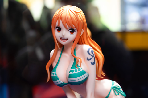 ブース内でかなり大きめのスペースで展示されていたのが、現在監修中の「B-style ONE PIECE ナミ水着Ver.」である。こちらは2026年3月下旬に発売予定で、価格は33,000円だ。タイトルにもあるように、ナミの水着姿がまぶしい作品だが、1/4スケールで全高は約380mmあり、これだけの大きさだと部屋に飾っておいてもかなり目立つ存在となりそうだ。