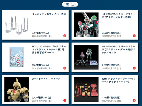 - 【BANDAI SPIRITS:2026年1月発売スケジュール】