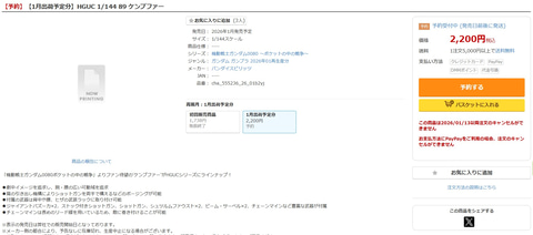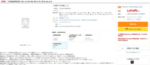 今回DMM通販にて2026年1月に入荷予定のガンプラが販売しており、「RG 1/144 RX-78-2 ガンダム Ver.2.0」のほか、「RG 1/144 MSZ-006 ゼータガンダム」「HGUC 1/144 ケンプファー」「HGUC 1/144 ガンダムMk- II(エゥーゴ)」「HGUC 1/144 ガンダムMk- II(ティターンズ)」の計5商品が販売中であることが確認できた。