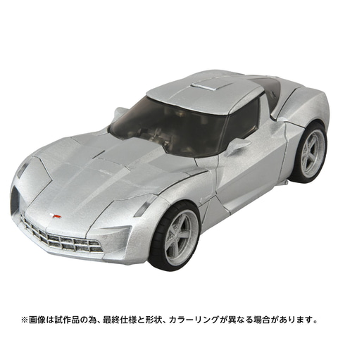 本フィギュアでは、白銀のボディを誇るビークルモードが「シボレー・コルベットスティングレイ コンセプトカー」の正規ライセンスを取得し、巧みな完全変形で足首がタイヤになっている特徴的なロボットモードへトランスフォームする。