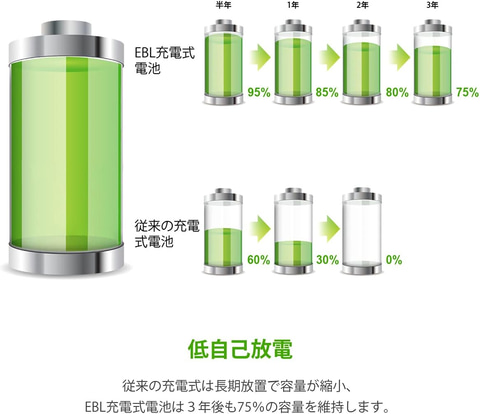 - 【Amazon:EBL 充電池】