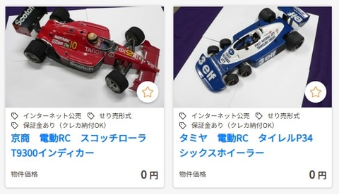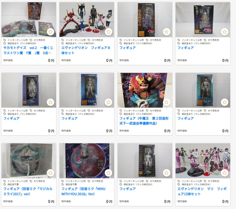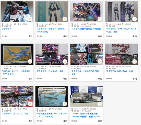KSI官公庁オークションにて、プラモデルやフィギュア、トイガンなどが出品されている。
