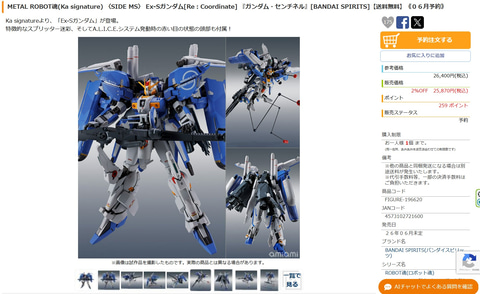 「METAL ROBOT魂(Ka signature)<SIDE MS> Ex-Sガンダム[Re:Coordinate]」がAmazonなどで予約開始!