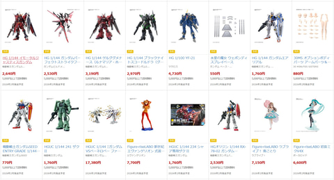 今回の抽選販売では、「MG 1/100 ウイングガンダムゼロカスタム」「MG 1/100 V2 ガンダム ver.Ka」「MG 1/100 ナラティブガンダム C装備 Ver.Ka」「RG 1/144 アカツキガンダム(オオワシ装備)」「HG 1/144 ガンダムパーフェクトストライクフリーダムルージュ」などの様々なガンプラが対象となっているほか、美少女プラモデルより「30MS オプションボディパーツ アルファシスターズファンタズム3[カラーB]」「Figure-riseLABO 新世紀エヴァンゲリオン 式波・アスカ・ラングレー」「Figure-riseLABO 初音ミクV4X」「Figure-riseLABO ホシノ・フミナ」などもラインナップ。