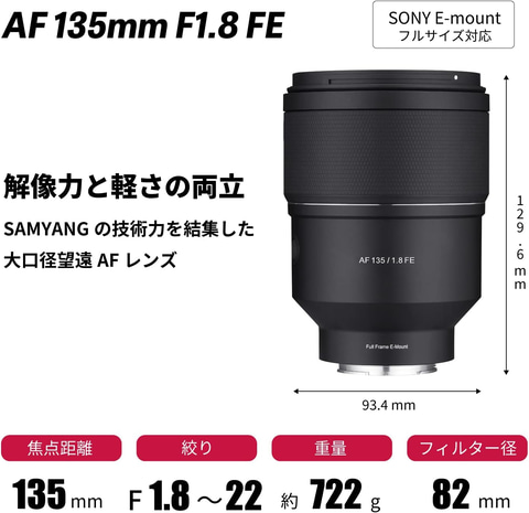 SAMYANG 単焦点レンズ AF 135mm F1.8 FE ソニー α Eマウント フルサイズ対応 標準 ブラック 887919
