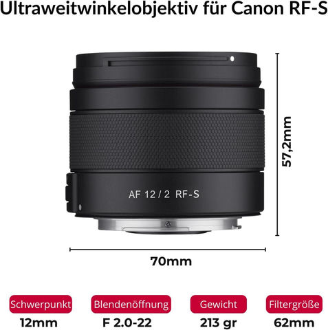SAMYANG 広角レンズ AF 12mm F2 RF-S キヤノン RF-Sマウント APS-Cフォーマット専用 フィルター径62mm 軽量約213g