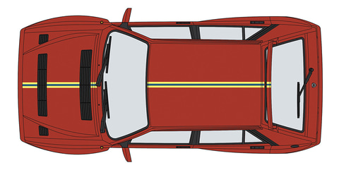 ボディパーツカラーはレッドで、イエローとブルーのセンターストライプを再現できるデカールが付属する。