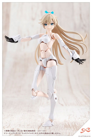 スカートパーツは「通常タイプ」、「なびきタイプ」、「座り姿勢タイプ」の3種が付属し、ボディパーツは「前傾姿勢用の上半身」、「座りポーズ」が付属する。またフルフェイスヘルメット、バイクに搭乗させられるライディングパンツ型の専用下半身パーツが付属する。