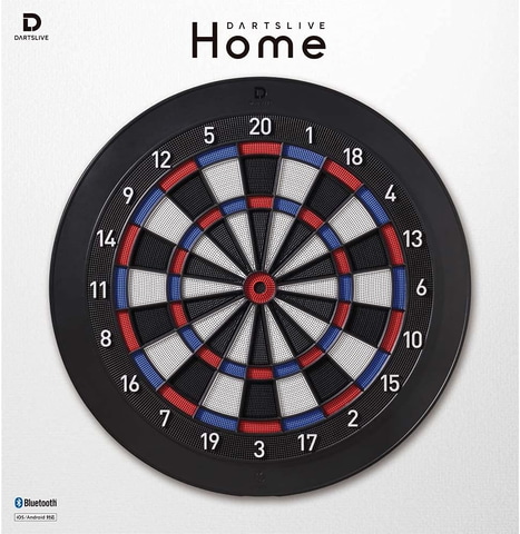「DARTSLIVE Home」は、スマートフォンやタブレットと連動して楽しめるホームボード。 「DARTSLIVE3」でおなじみのグラフィックとサウンドを再現し、自宅にいながら「DARTSLIVE3」と同じ感覚でプレイできる。 通信対戦「LIVE MATCH」も搭載されているため、世界中のプレーヤーと対戦を楽しめる。