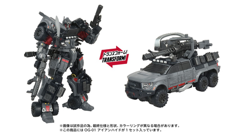 トランスフォーマーの新シリーズ「オーバーギア」の第1弾では、オートボットの戦士であるアイアンハイドが登場する。アイアンハイドは、オートボットレジスタンスの一員として、民間警備会社に偽装した第3部隊「RED LIGHTNING」の隊長を務めており、6輪にカスタムされた大型ピックアップトラックにトランスフォームする。ビークルモードとロボットモードの両形態の各部には、多数の3mmジョイントと5mmジョイントが配置されており、付属のアクセサリーパーツを付け替えて遊ぶことができる。