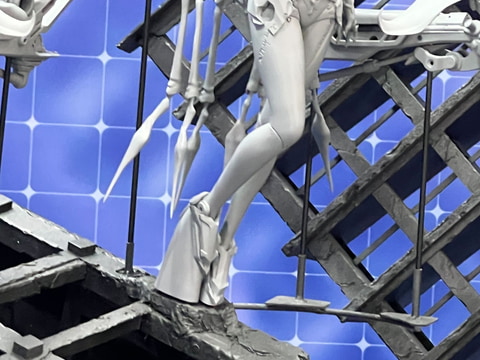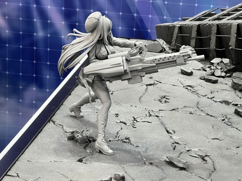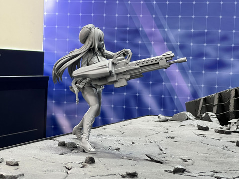 今回イベント会場の同社ブースでは様々な作品のフィギュアを展示しており、「勝利の女神:NIKKE」からは「アルカナ」の原型や「バイバー」のデコマスを展示しているほか、ジオラマ展示にて「ラピ:レッドフード/ベヒモス チャプター34 SUCCESSION -継承- Ver.」の原型を展示している。