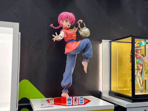 またその他にも「学園アイドルマスター」より「花海咲季/月村手毬/藤田ことね Re;IRIS Ver.」の原型や、「アズールレーン」より「ラファエロ <愛と美のベスト・シークレット>Ver.」、「人外教室の人間嫌い教師」より「右左美 帥 水着Ver.」、「ブルーアーカイブ -Blue Archive-」より「チアキ」、「アイドルマスター シャイニーカラーズ」より「黛 冬優子 『AXGRIT』Ver.」、「らんま1/2」より「らんま 1/2スケールフィギュア」、「ライザのアトリエ3 ~終わりの錬金術士と秘密の鍵~」より「ライザリン・シュタウト 日本人形 1/4スケールフィギュア」などのデコマスも展示している。