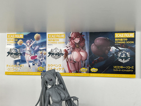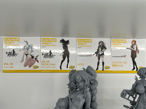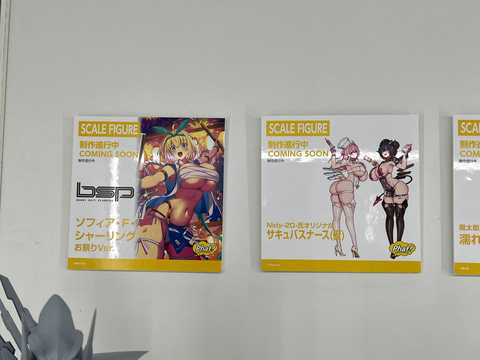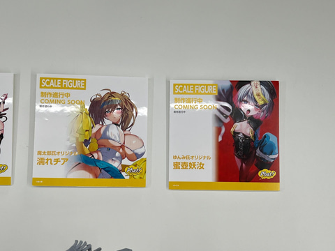 その他にも、アニメやゲーム作品のフィギュアが多数展示されており、「お兄ちゃんはおしまい!」より「緒山まひろ」や「緒山みはり」、「まいてつ Last Run!!」より「ハチロク」や「ハチロク バニーVer.」、「魔法少女にあこがれて」より「マジアベーゼ 第二形態」、「ノーゲーム・ノーライフ」より「ジブリ―ル バニーVer.」、「銀河特急 ミルキー☆サブウェイ」より「マキナ」や「チハル」、「アズールレーン」より「キアサージ スプリング・モニタリング」など、様々なフィギュアの原型やデコマスを展示している。