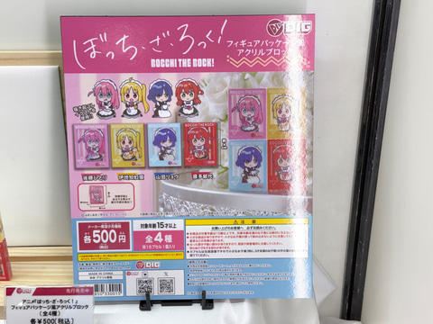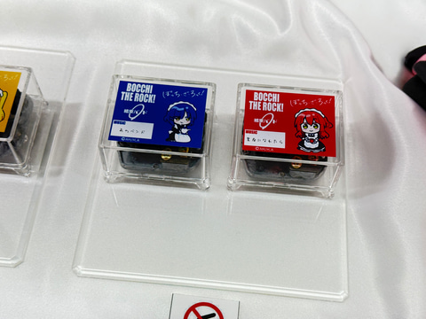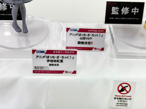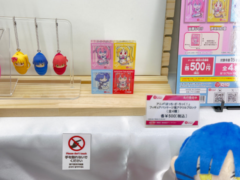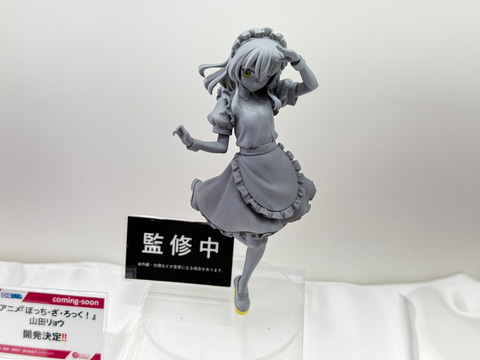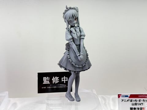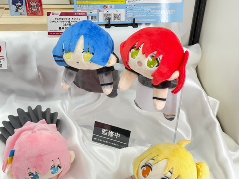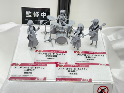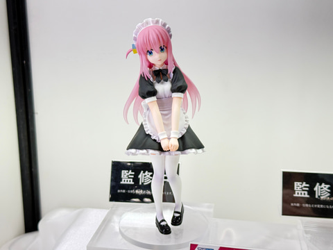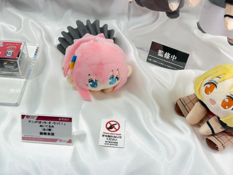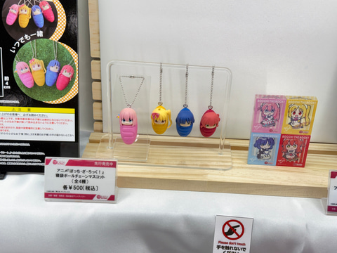 今回のブースでは、「ぼっち・ざ・ろっく!」より後藤ひとり、喜多郁代、伊地知虹夏、山田リョウの演奏姿を再現した可動フィギュアやメイド服姿のスケールフィギュアを展示。さらにメンバーのぬいぐるみや寝袋姿のボールチェーンマスコットなどのグッズも並んでいる。