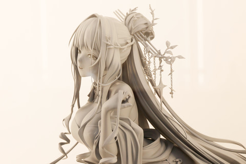 1/4スケールということもあり見た目のインパクトが強かったのが、VKENDから発売予定の「勝利の女神:NIKKE クラウン - グロリアスフラワー」である。今回展示されていたのは、現在監修中の原型だ。ただ大きいというだけではなく、ディテールも圧倒的である。