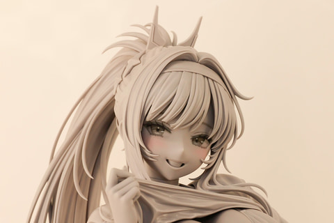 AMAKUNIから発売予定のフィギュア「勝利の女神:NIKKE リター」の原型が、あみあみのブースで初公開されていた。同作のキャラクターはセクシーなイメージが強いが、こちらのリターはどちらかというとボーイッシュで可愛らしい見た目が魅力である。今回のフィギュアでも、その特徴がよく捉えられている。