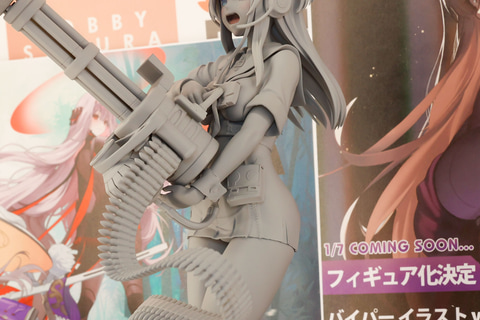 気分が高揚しているのか焦っているのかは分からないが、頬を赤らめて口を大きく開けている表情がなんともかわいらしい。ガトリングマシンガンの弾薬が体にまとわりつく様子や、銃口から火花が飛び出す演出も再現されており、仕上がりが楽しみだ。