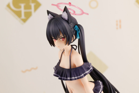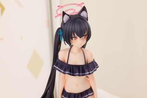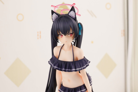 ややツンとすましたような鋭い表情をしているところや、独特の立ちポーズ、そして膝の辺りまで伸びた長い黒髪などもしっかりと再現。フリルの付いた黒いビキニに加えて、頭にはケモミミや青い髪留めなどが付けられている。