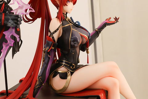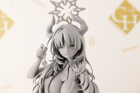 頭から生えた鋭利なツノや独特な形状をしたヘイローなど、キャラクターの特徴はしっかり押さえられている。膝立ちし、片手は床につきながら、もう片方の手で髪をいじっているようなポーズになっている。複雑な形状をした長い髪や豊満なバストなど、造形も見事だ。
