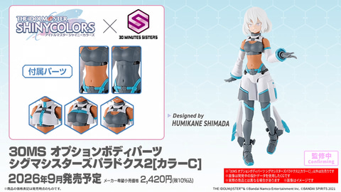 また、「30MS オプションボディパーツ シグマシスターズパラドクス2[カラーC]」も同時に発表した。新カラーで9月に発売を予定している。価格は2,420円