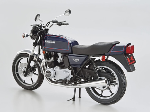 本製品は、1979年に発売された「カワサキ Z400FX」を1/12スケールで再現したプラモデル。E1からE3までのミラーやシートパターンを再現することができる。また、質感を高める金属製のスプリングをリアショックに採用している。