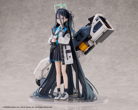 公式の立ち絵姿を立体化しており、足元まで垂れ下がるほどに長い黒髪や、彼女の身長よりも大きなレールガン「光の剣 スーパーノヴァ」も見事に表現している。