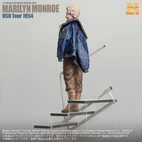 本製品は1954年2月に行われた米国慰問協会(USO)により、朝鮮戦争停戦後の在韓米軍へのキャンプショー・ツアーでの姿を再現した姿となる。C-54輸送機のタラップを降りてゆく彼女は訪問先である駐留米軍基地に合わせたミリタリーウェアを着用しており、スクリーンで見る華やかな衣装とは異なる彼女の魅力を引き出している。パンツにはウエスト部分を絞れるようにボタンが追加されており、 ミリタリーウェアを着用しながらも女性らしいシルエットを際立たせる着こなしは見事と言える。