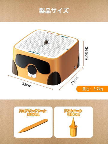 本製品は、段ボールの切断、パーソナライズされたカードの作成、3Dモデルの構築が可能な段ボールカッティングツール。カッティングプレートのガイドラインに沿って段ボールを押し進めるというシンプルな方法でカットすることができる。刃なしの設計で、一方向だけで安全にカットが可能。髪の毛も巻き込まない設計になっているため、子どもでも安心して使用できる。