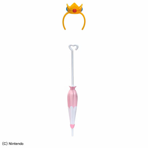 「リカちゃん スーパーマリオ リカちゃん ピーチ姫スタイル」は、黄金色のロングヘアに、ピンクのドレスと手袋を合わせたピーチ姫コーデのリカちゃんで、冠カチューシャやドレスのブローチ、閉じた傘が付属し、どれもピーチ姫とお揃いのデザインとなっている。
