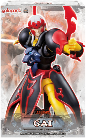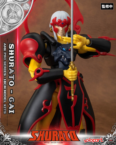 本製品は平成元年に放送したTVアニメ「天空戦記シュラト」に登場する「夜叉王ガイ」を立体化したもの。サイズは全高約180mm。アニメでは「八部衆」の1人で、狼の「神甲冑」を纏うライバルキャラクターとして登場した。