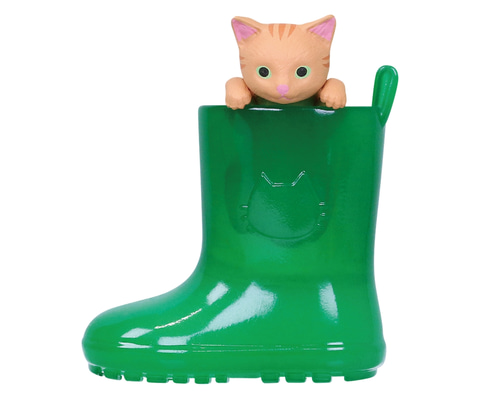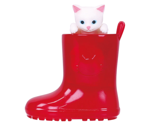 本商品は、長靴に入った子猫を模したミニチュア。子猫は長靴から取り出すこともできる。