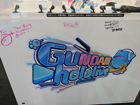会場のバンダイブースにて、「機動戦士ガンダム」と「ホロライブ」のコラボ展示が実施されている。コラボガンプラの参考展示をはじめ、塗装例も展示されている。