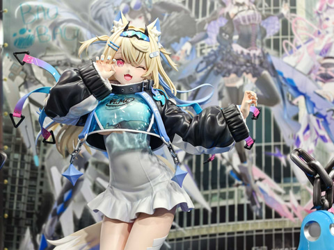 また「ホロライブ English -Advent- フワワ・アビスガード&モココ・アビスガード 「AXGRIT」Ver. 1/7スケールフィギュアをサイズアップした1/1スケールフィギュアも登場。会場で注目を集めていた。サイズアップされたことでフィギュアの表情やディテールなど細部までその造形の繊細さが改めてチェックできる。