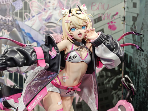 「ホロライブ English -Promise- ハコス・ベールズ 「AXGRIT」Ver. 1/7スケールフィギュア」はハコス・ベールズさんの姿をSF風にアレンジ。大きなブーツにバイザーを装備。巨大な肉球付きのユニットを従えた元気な雰囲気のフィギュアだ。