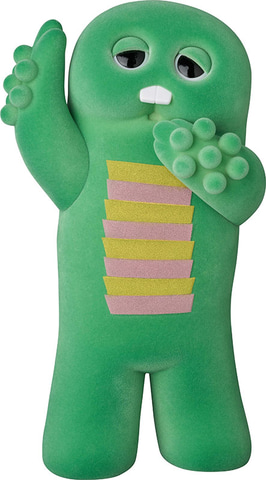 同社のフィギュアシリーズ「VCD(ヴァイナルコレクティブルドールズ)」のガチャピンとムックがLサイズになって登場。ガチャピンはフロッキー仕上げで質感を再現、ムックは全身を布製の外皮で包み再現されている。