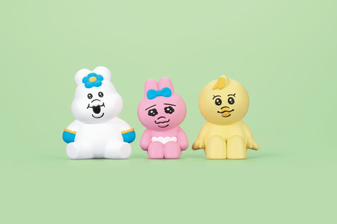 相手の肩にズンともたれるような仕草が可愛い「肩ズンFig.」シリーズに、イラストレーター可哀想に!氏のキャラクターが登場。「おぱんちゅうさぎ」、「んぽちゃむ」、「きみまろ」がころんとした手のひらサイズで立体化されている。サイズは約47~54mm。