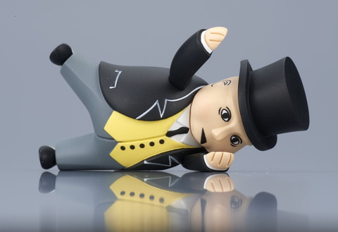 普段は責任感が強く、きかんしゃたちを監督しているトップハム・ハット卿が、ドジっコあふれるポーズで“すってんころりん”しているフィギュア。昔ながらの人形劇の頃のハット卿を再現しており、顔も哀愁漂う表情に仕上がっている。
