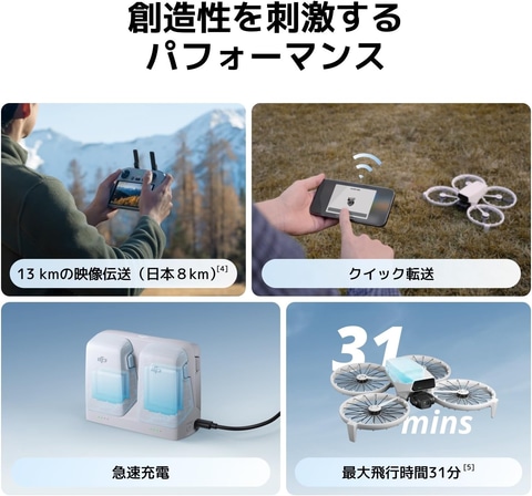 セールでは、249g未満の折りたたみ式軽量設計で、3軸ジンバル機構を備えた「Mini 4K」や、軽量設計のドローン「DJI Flip」本体にバッテリー2個が付属する「DJI Flip バッテリー2個コンボ」Amazon限定モデル、「DJI Neo 2」本体に加え、バッテリー3個、充電ハブ、プロペラガードなどが含まれた「DJI Neo 2 Fly Moreコンボ」Amazon限定モデル、本体重量が135gと軽量かつ携帯性に優れたモデル「DJI Neo」本体に、バッテリー3個のほか双方向充電ハブも付いたAmazon限定モデルがラインナップ。それぞれ期間中、割引価格で提供される。
