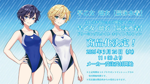 コトブキヤは、プラモデル「早乙女 瑠衣【桃桜高校・競泳水着】」と「早乙女 瑠衣【桃桜高校・競泳水着】ドリーミングスタイル ホワイトドルフィン」を3月24日11時より予約受付を開始する。