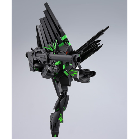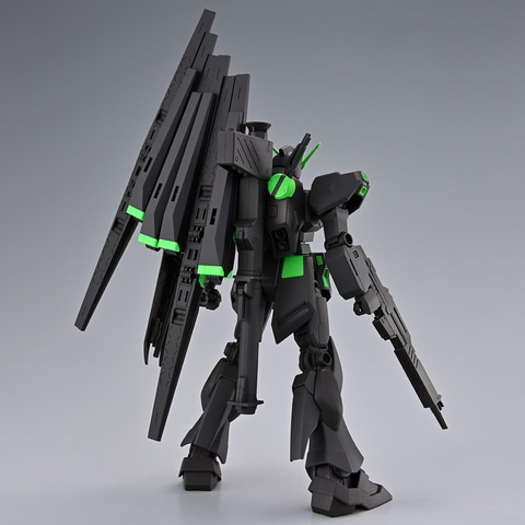 ビーム・サーベル、ビーム・ライフル、ニュー・ハイパー・バズーカ、シールド、フィン・ファンネルが付属。素体はニッパーを使わず、手で外せるタッチゲート仕様となっている。黒とネオングリーンのビビッドな色使いが映える、新時代のガンプラといえる。