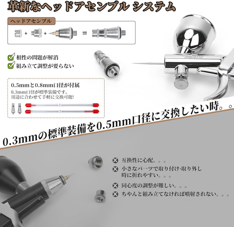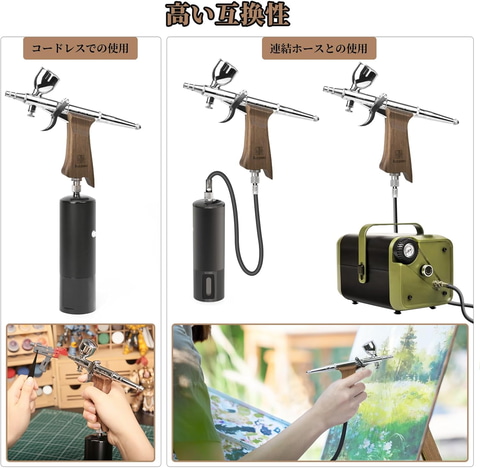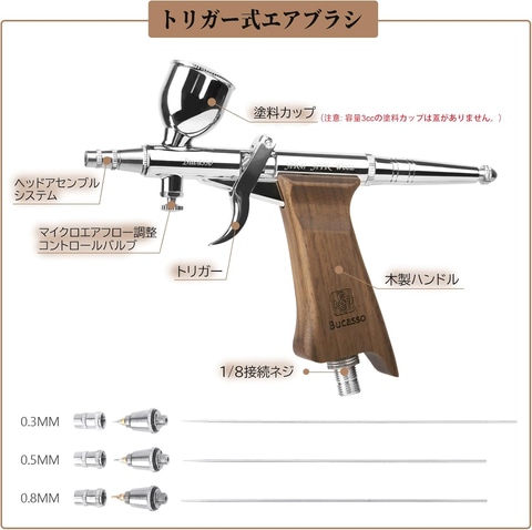 Bucasso エアブラシ「W002-Walnut」ダブルアクション トリガー式 ハンドピース ヘッドアセンブリ交換可能