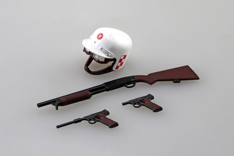 飛葉の装備でもあるヘルメットやゴーグル、ショートバレルウッズマンとロングバレルウッズマン、M31ショットガンも付属する。